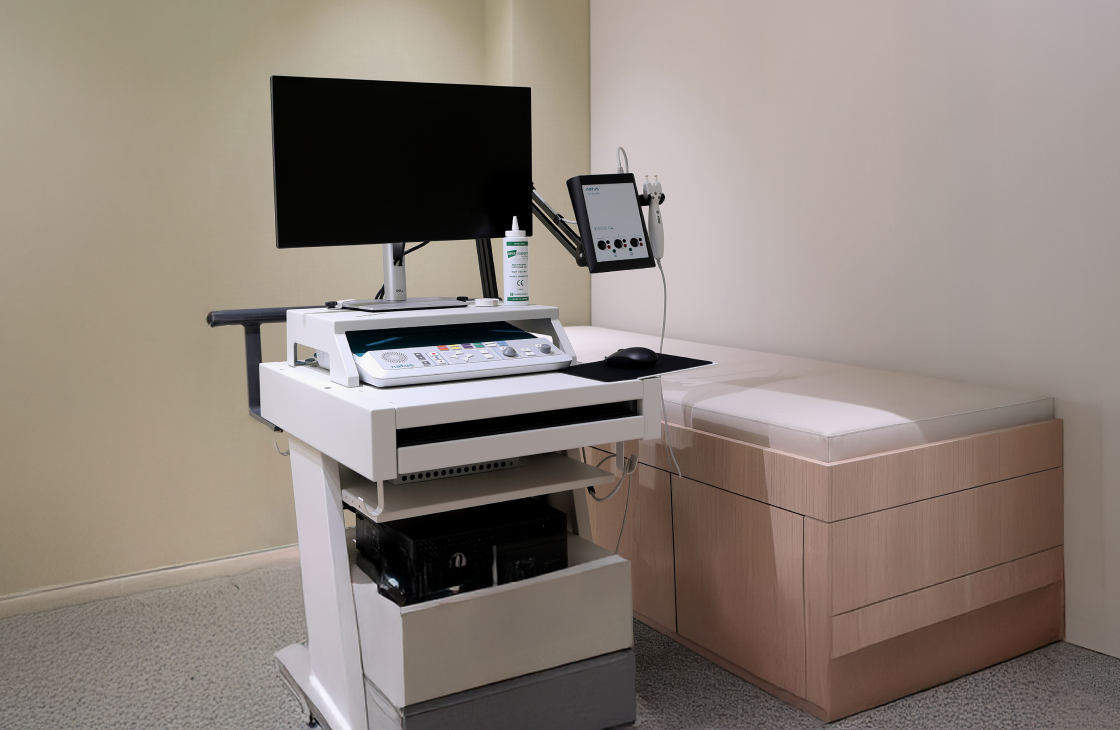 근육과 신경의 전기적 활동을 측정해 신경 손상, 압박, 근육 질환 여부를 객관적으로 평가하는 정밀 검사 장비입니다.